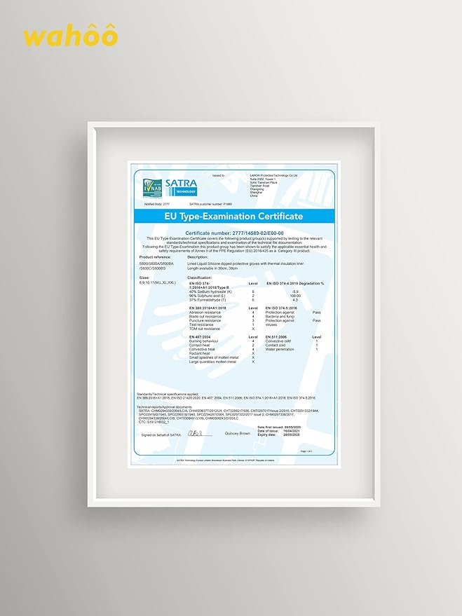 - Next Level Performance - wahoo silicone oven mitts for hand protection are tested in accordance with EN 388:2016+A1:2018, EN 511: 2006 contact cold, EN407:2004 contact heat, and meet CA Prop.65 regulations for phthalates. We offer different sizes medium, large, xl, xxl.