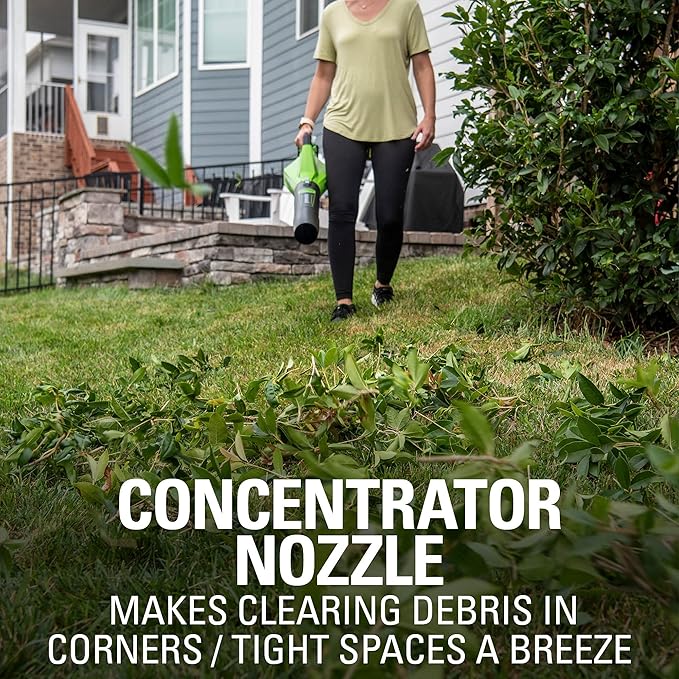 - 40V BLOWER : Powerful 450 CFM / 120 MPH performance for efficient leaf and debris clearing