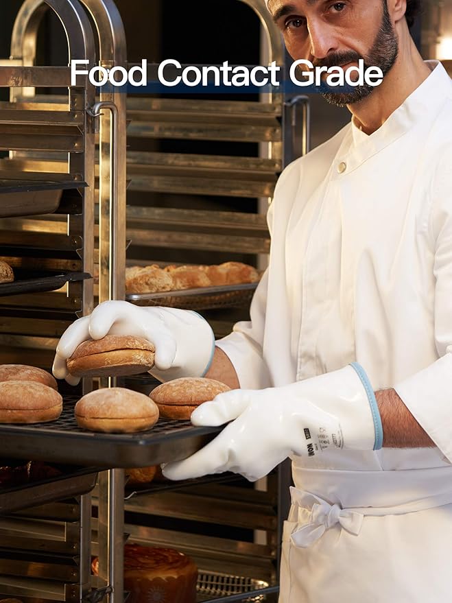 LANON Protection wahoo Liquid Silicone Smoker Oven Gloves, Food-Contact Grade, Heat Resistant Gloves for Cooking, Grilling, Baking, White, XXL/11