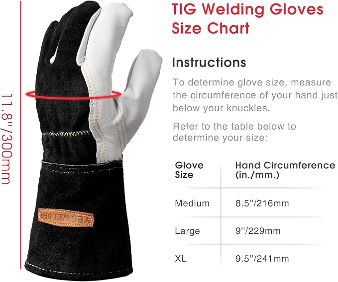 YESWELDER Premium Goatskin TIG Welding Gloves | Top Grain Leather | High Dexterity |True - Fit-M