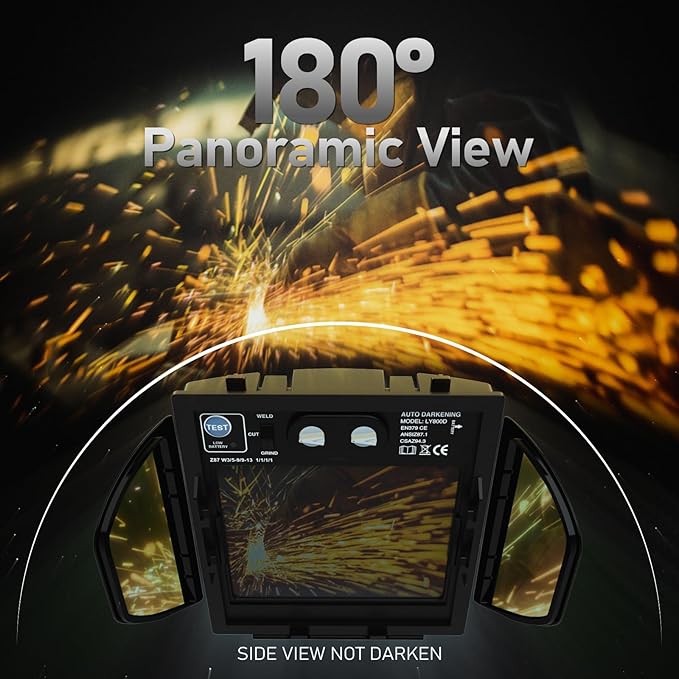 YESWELDER Auto Darkening Welding Helmet with SIDE VIEW, 180° Panoramic View, 1/1/1/1 True Color Solar Powered Welder Hood, Wide Shade 4/5-9/9-13 Welder Mask for TIG MIG ARC CUT and GRIND, LYG-Q800D