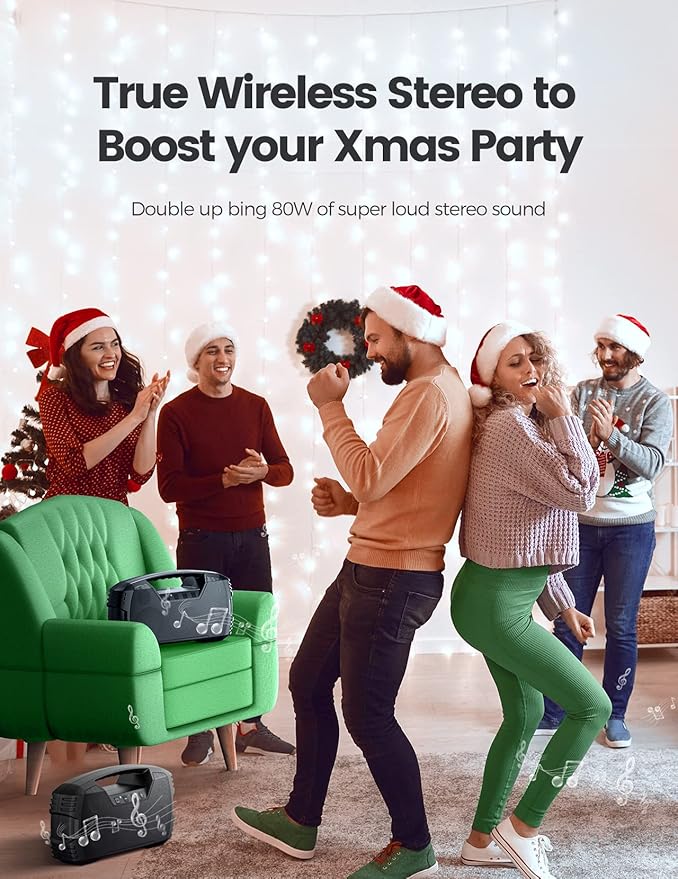 - Durable Portable Speaker with Handle: Crafted from ultra-durable ABS and metal, this portable outdoor speaker is very durable and impact-resistant. With a built-in handle, it's so convenient to carry the speaker anywhere for outdoor sports or other activities, bringing big fun with us. This big speaker is a great choice as a gift for men, women, teenagers, and seniors everyone who loves music
