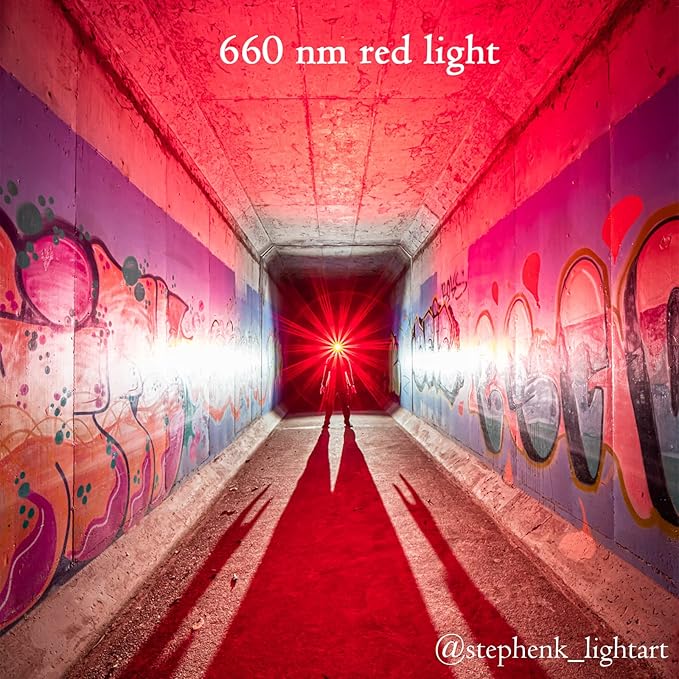 - Deep Red LED 660nm: Red light in the wavelength of 660nm protects your night vision, keeps your peripheral vision and helps improve declining eyesight