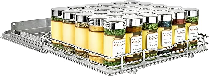 - LYNK PROFESSIONAL, THERE IS NO SUBSTITUTE! FEEL LIKE A PROFESSIONAL COOK WITH EVERYTHING AT YOUR FINGERTIPS – our spice rack with our patented PROGLIDE PLUS 2 heavy-duty ball bearing glides adjust to perfectly fit the various depths of upper cabinets giving you easy access, vertical storage, and organization for all your bottles and jars