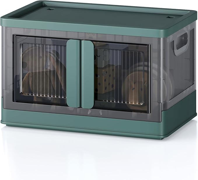 8.4Gal Collapsible Storage Bins with Lids & Wheels - 1 Pack Stackable with Doors, Heavy-Duty Plastic Containers for Home/Office, Green
