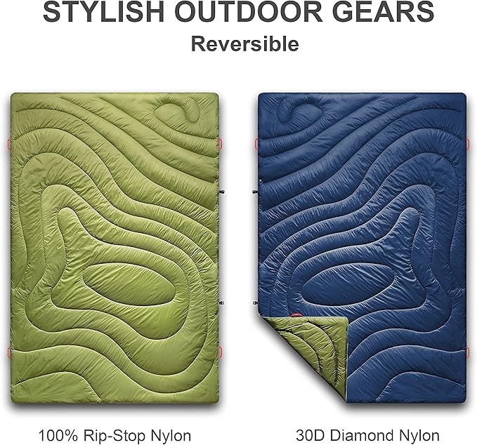 Camping Blanket | X-Large, Wind and Waterproof Warm Puffy Blanket Quilt | Lightweight Portable | Outdoor Concerts, Picnics, Backpacking, Travel, Hiking, Beach, Stadium (Garnish Green)