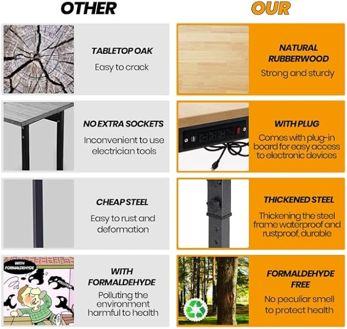 - 【Durable Material & Sturdy Base】:Featuring 4 steel legs and 1.2" stronger rubber wood countertop, the stable and durable work benches for garageworkbenches ensures high weight capacity (up to 2000 lbs). Besides, it is free of burrs to prevent stabbing of the skin and it does not deform easily.