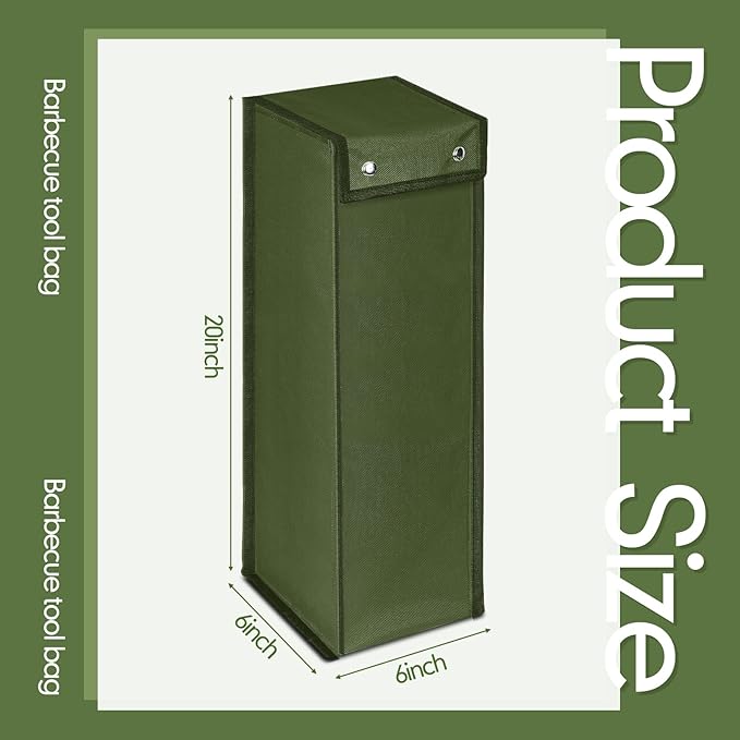 - Large Capacity: our grill utensil storage bag measures approx. 6 inches in length and width, and 20 inches in height, proper in size and light in weight, can hold most barbecue tools, which can be applied to store and transport your BBQ tools