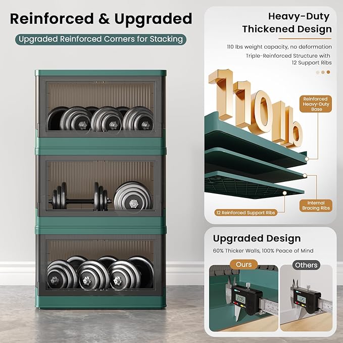 - Quick Assemble & Fold: Our storage containers can be assembled in 1 minute and folds down to 4 inches when not in use, easily tucking under beds/tight spaces—saves 80% of space. Heavy-duty PP plastic (2mm thick walls) supports 110 lbs (50 kg)/pack