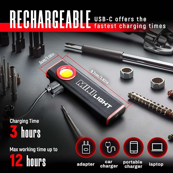 - 【Ultra-Light Bright】With its 800-lumen LED flashlight and 1000/1600-lumen COB work light, your work area will be bathed in radiant brilliance, as bright as the midday sun. It offers an unparalleled runtime of 3-12 hours, ensuring worry-free productivity during your tasks. Whether you're exploring the great outdoors or simply performing everyday tasks, this ultra-light bright work light is an exceptional choice that will never disappoint!