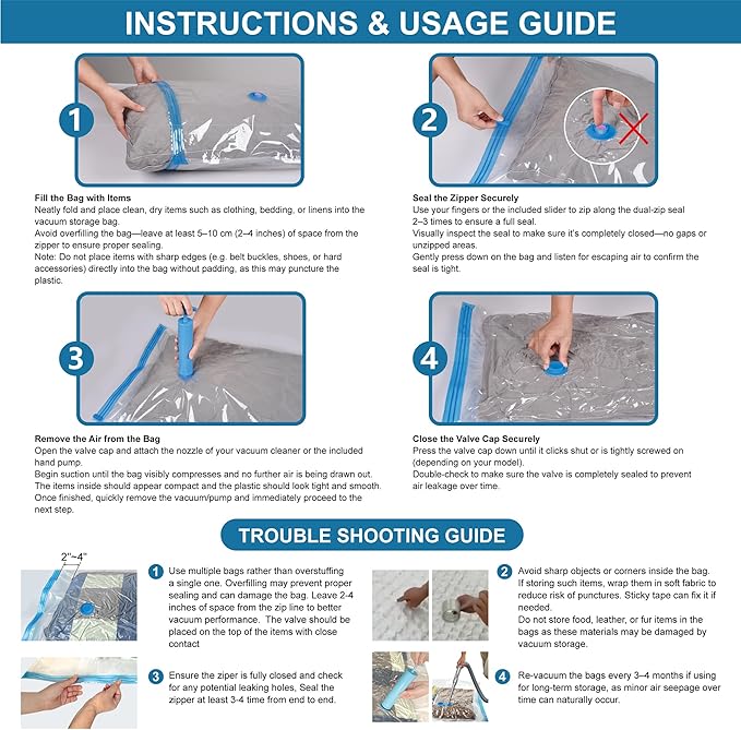 - 4 Pack Includes: 4 Pack XXL Bags (47.2x35 in) XXL jumbo storage bags; Whether you are in the midst of storing or relocating, these jumbo vacuum bags totally change the game