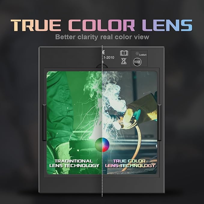 - Large Viewing and Hemispherical Lense: The 3.94" x 3.66" large viewing screen with Hemispherical lense design, combined with exceptional 1/1/1/1 Optical Clarity, guarantees a crystal-clear view, depicting true color views with cinematic quality. Weld with confidence as if you were watching a picture in a movie theater.