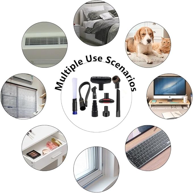 - 【Wide Application】These vacuum accessory can be used to clean a variety of surfaces and spaces, including desks, floors, cars, sofas, keyboards, carpets, vents, blinds, or pet hair, and can reach into tight spaces and corners. Help keep your home clean and tidy.