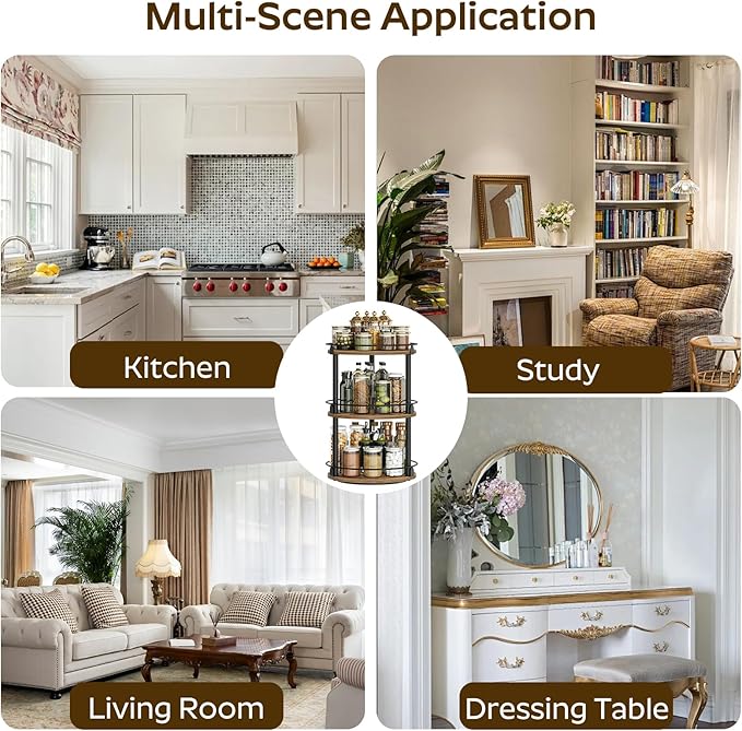 - Reduce Countertop Pressure: Place the lazy susan on the kitchen countertop to keep spice jars handy and the cooking area less messy. Use it on a dressing table to store your favorite cosmetics or on a dining table to easily locate your preferred spices