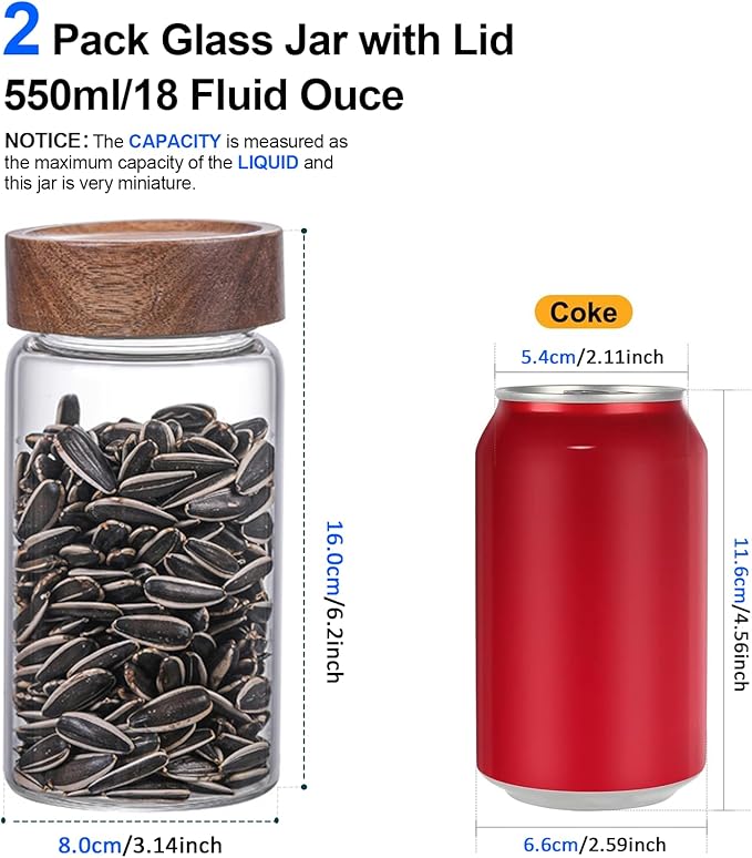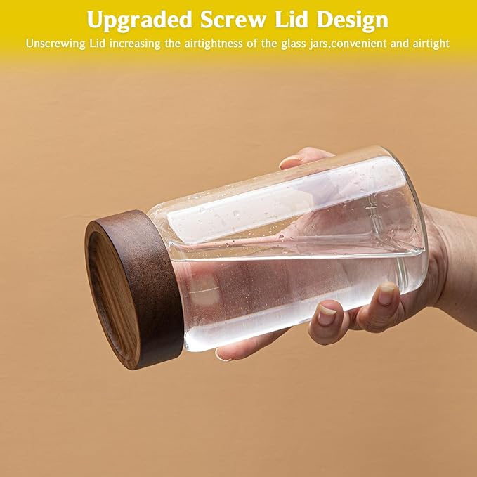 - 【WIDE APPLICATIONS】Glass canning jars storage are suitable for storing various dried ingredients to retain their freshness.Glass jars with wood lids perfect for storing dry food , such as,cookies,dried beans,pepper,oatmeal,jams,chutneys, rice, flour, tea, coffee, biscuits, candy,cheese,flour, sugar, seeds,etc. Keep your kitchen tidy and safe,saving space and convenient .