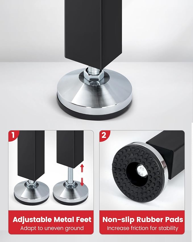 - ๐๐๐ฃ๐ฎ๐ฌ๐ญ๐๐๐ฅ๐ ๐ฆ๐๐ญ๐๐ฅ ๐๐๐๐ญ, adapt to uneven ground to maintain stability. Anti-slip silent ๐ซ๐ฎ๐๐๐๐ซ ๐ฉ๐๐ increase friction for stable and safe.