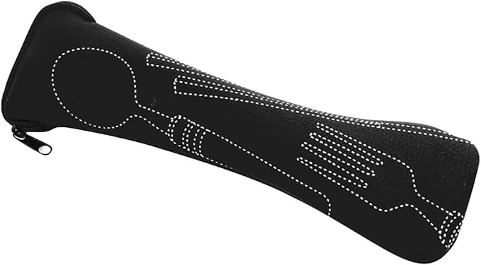 Black Portable Tableware Bag Outdoor Travel Camping Cutlery Pouch Storage Bag Flatware Tableware Dinnerware Carrying Case for Knife, Fork, Spoon, Tea Spoon, Chopsticks, Bottle Opener, Straws