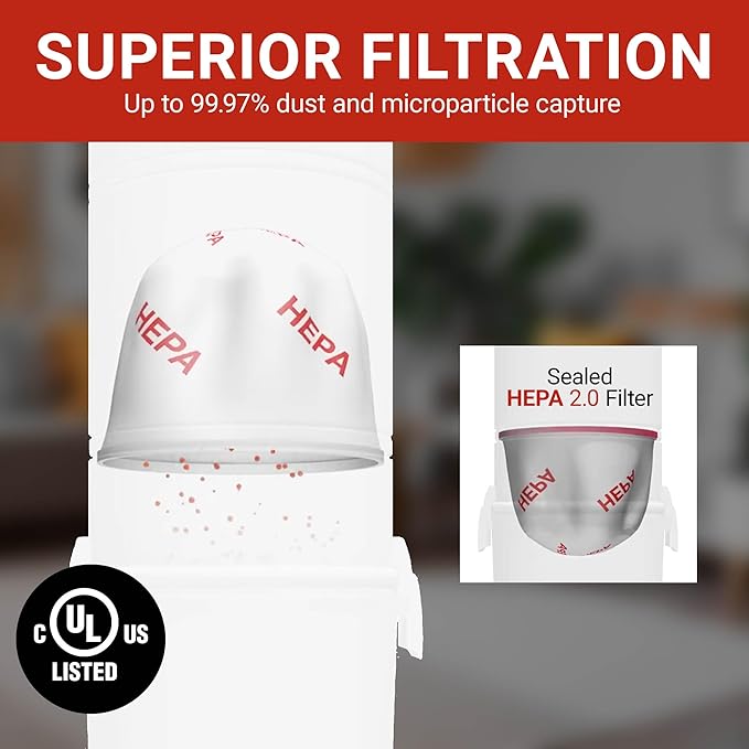 - Advanced HEPA Filtration: Breathe clean air at home with up to 99.97% dust and microparticle capture. The NuTone central vac AP6501's HEPA filtration promotes cleaner air, potentially reducing allergy and respiratory symptoms for a healthier home.