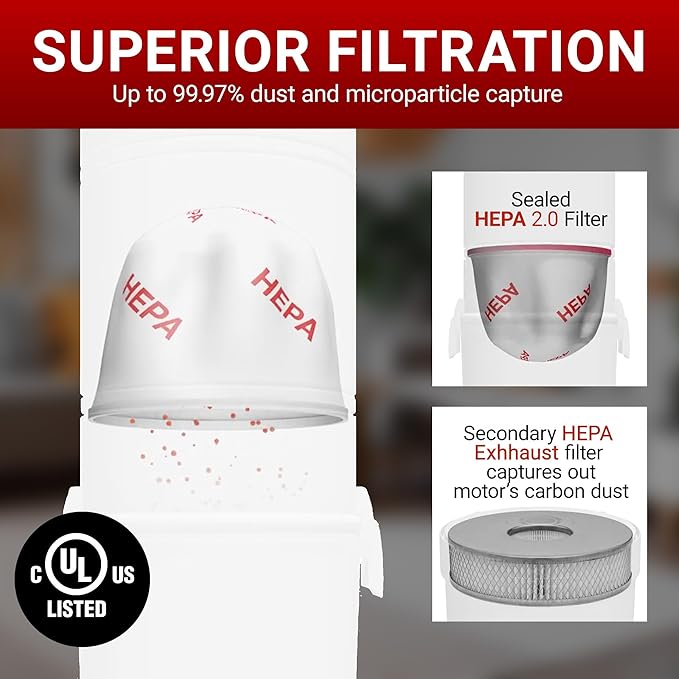- Advanced HEPA Filtration: Breathe clean air at home with up to 99.97% dust and microparticle capture. The NuTone central vac AP7001's HEPA filtration promotes cleaner air, and respiratory symptoms for a healthier home.