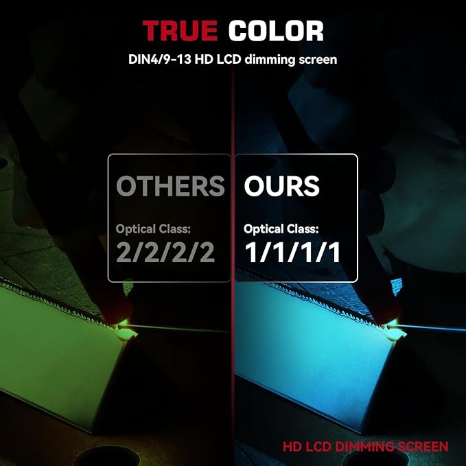 - 【LARGER & CLEARER SCREEN】Viewing Size 3.86" x 1.69". Our welding helmet featuring a 1/1/1/1 optical clarity lens and advanced true color technology, provides a clearer and more realistic view for enhanced efficiency and precision. Cheater Lens / Magnifying Lens Compatible Design.