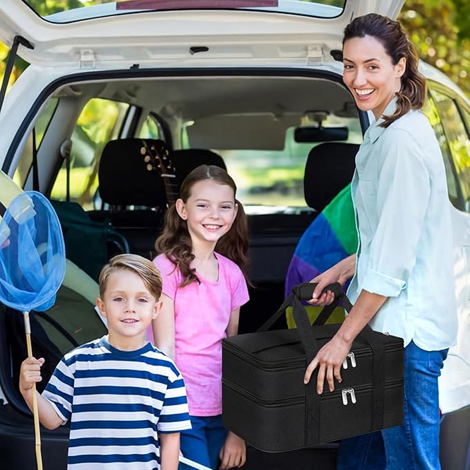 Double Insulated Casserole Carrier, Portable Casserole Carrier for Hot or Cold Food Lunch Tote Warmer or Cooler Bag, Lasagna Lunch Bag for Potluck Parties- Fits 9" x 13" Baking Dish-Black