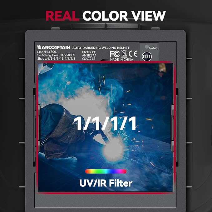• LONGER SERVICE LIFE - The welding mask is equipped with two solar panels on the front and two CR2450 lithium batteries on the back, providing a working time of up to several years, with enhanced durability.