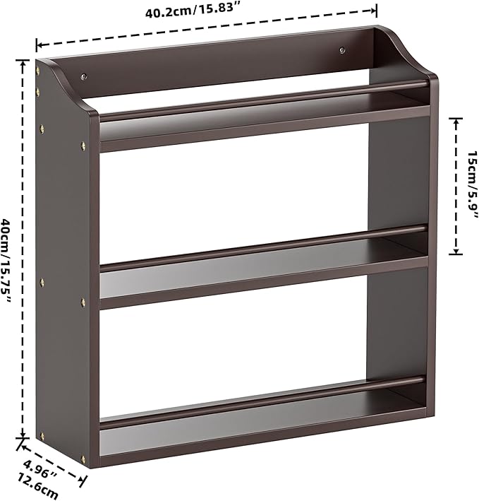 - FIX THE SPICE MESS: Tired of spice clutter? Our 3-tier bamboo rack solves it. Sized 15.83"W x 4.96"D x 15.75"H (5.9" per tier), it saves counter space while triples storage. With 4.96" depth, it fits spices to cans. Each shelf holds 8+ jars; the top tier is for tall bottles. Front guardrails keep jars safe. Get an organized kitchen with this handy rack