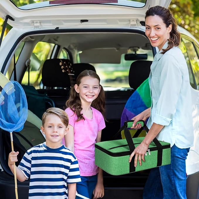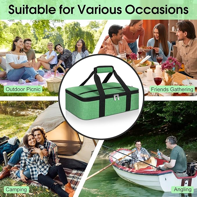 Insulated Casserole Carrier, Portable Casserole Carrier for Hot or Cold Food Lunch Tote Warmer or Cooler Bag, Lasagna Lunch Bag for Potluck Parties- Fits 9" x 13" Baking Dish-Green