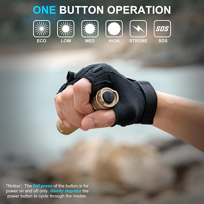 - High Transmittance TIR Lens and Unique Lamp head : The light transmittance reaches 92-93%, which is the best. It has outstanding aging resistance and is often used as an outdoor material. Pretty and unique head design allows you easy to distinguish whether the flashlight is turned on or not when it's standing