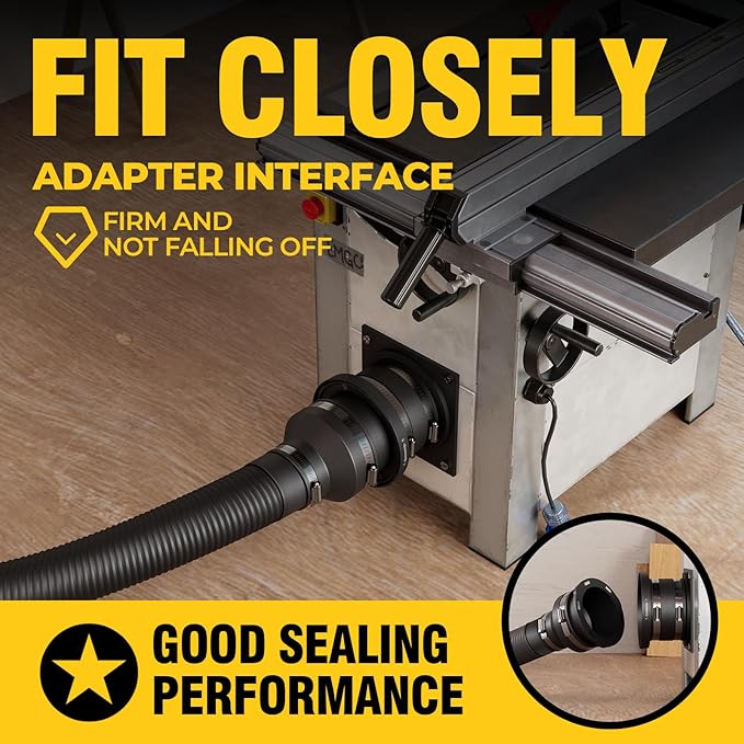 - 【Locked & Secure】 Rotate the connector to positively lock it in place. No accidental disconnections, no flying wood chips – just reliable dust control.