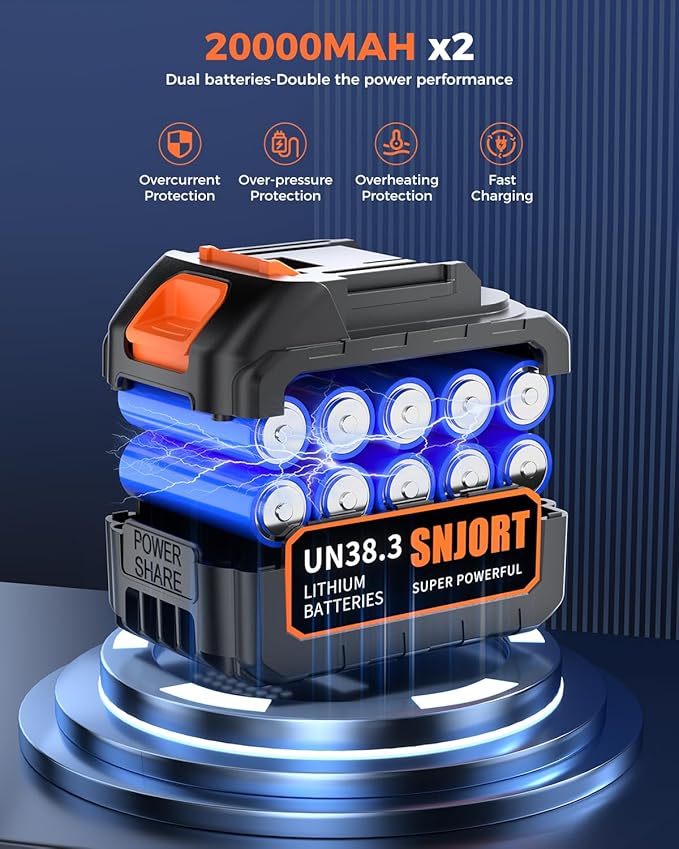 - Complete Leaf Blower Package: This cordless leaf blower is equipped with two 20,000mAh large-capacity batteries that provide up to 50 minutes of continuous operation. The Cordless leaf blowers do not require wires to provide faster, easier and easier cleaning.