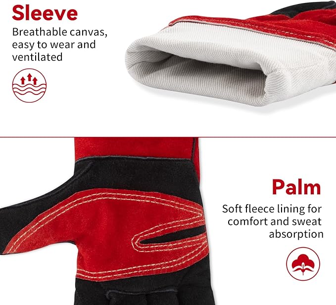 • Multi-Purpose Performance:Designed for professional welding applications including SMAW, GMAW and FCAW processes, yet versatile enough for blacksmithing, grilling, baking, gardening and animal care. Perfect for workshop, kitchen, backyard or campsite use - these gloves deliver reliable protection across a wide range of high-heat and heavy-duty scenarios.