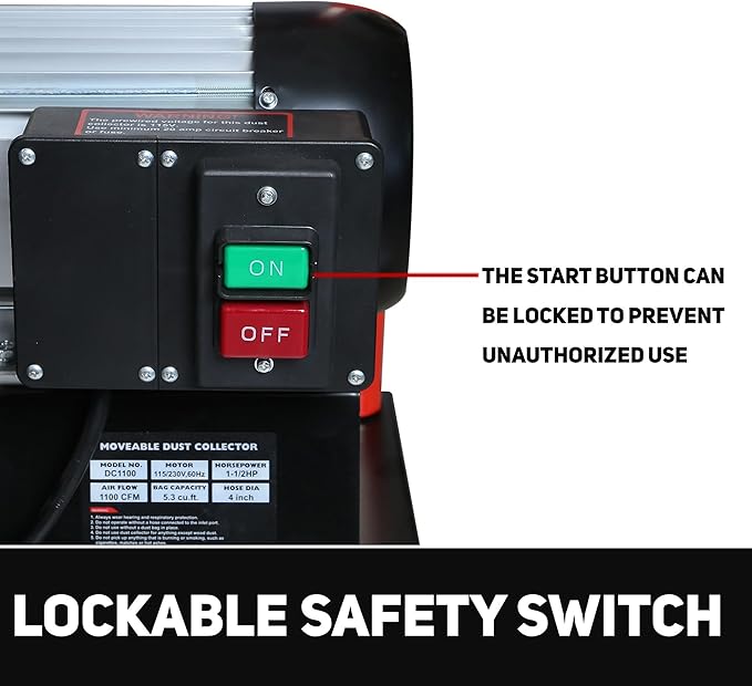 - High-Performance Motor: The 1-1/2 HP dual voltage induction motor generates 1100 CFM air flow for efficient dust collection