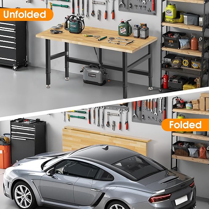 - SPACE SAVING: This foldable work bench features a foldable design. When not in use or when space is limited, the table can be folded and stored away. When folded, it occupies only 6 inches of space. This allows your workspace to be flexible and adaptable.